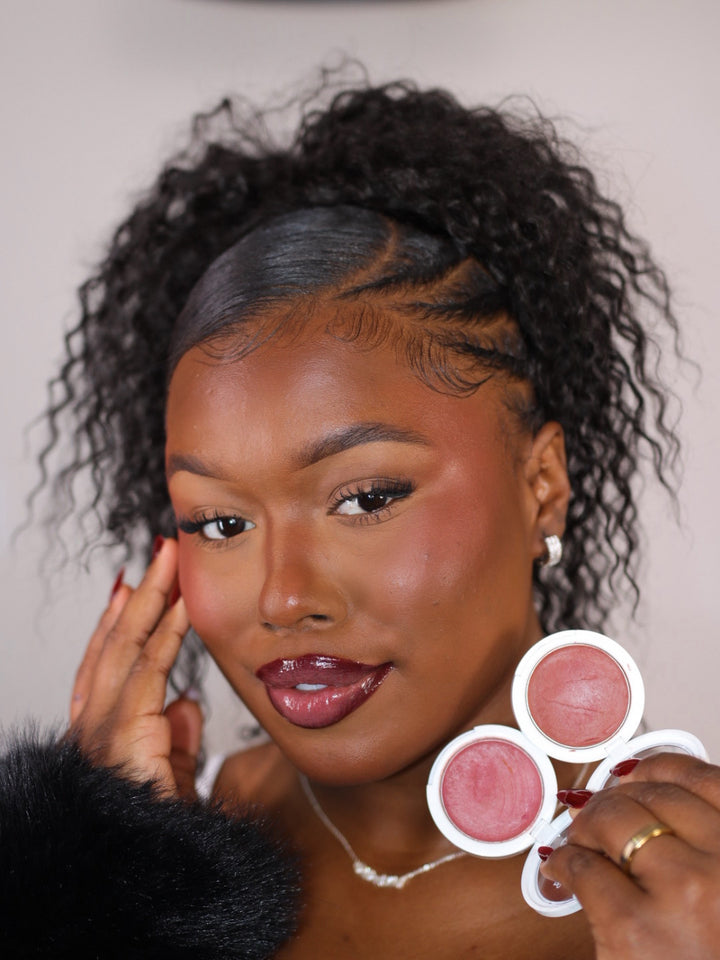 A influencer Nathalia Gois arrasou nas combinações usando nossos dois queridinhos: Blush Cremoso Pétala, com sua textura leve e super pigmentada para um acabamento natural, e o Blush Baked Happy Hour, que garante um toque aveludado e fixação impecável. Inspiração perfeita para elevar sua make!