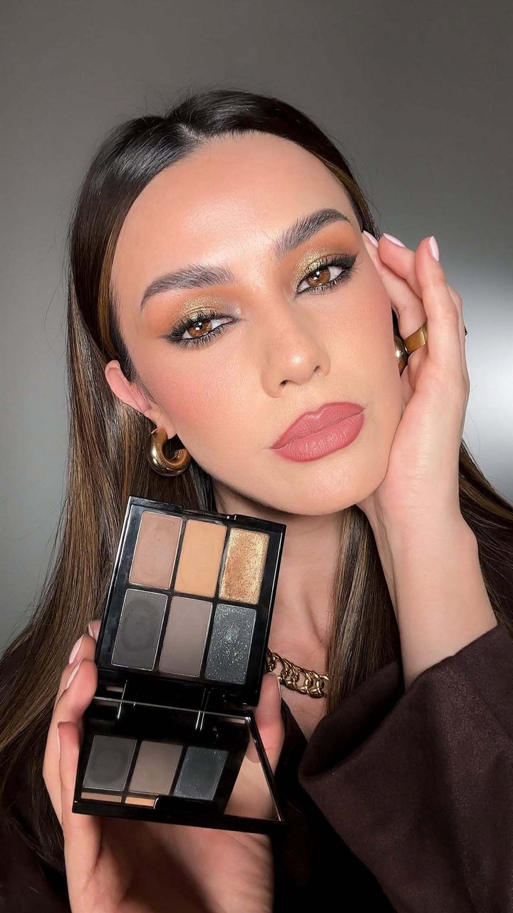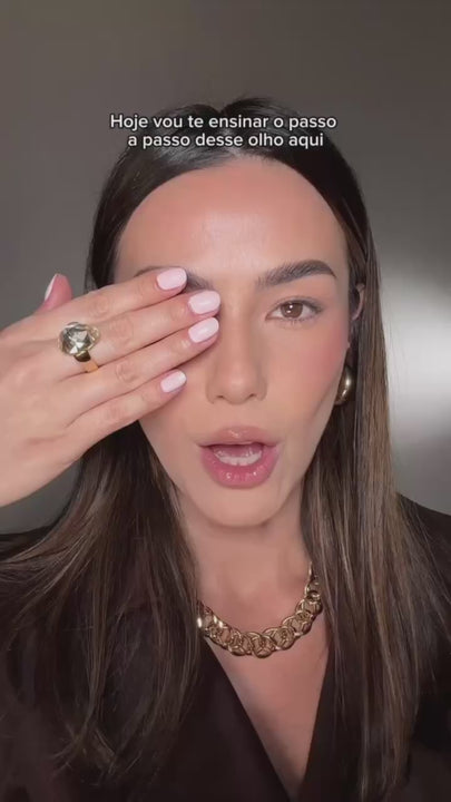 Para conquistar esse visual, a Paleta Dark Smoke foi a escolha ideal, garantindo um esfumado perfeito com acabamentos que variam entre matte, metálico e luminoso. O Lápis Superpreto trouxe intensidade ao olhar, com sua alta pigmentação e longa duração. Já nos lábios, Taise apostou na Lapiseira Retrátil cor Terracota para um contorno preciso e finalizou com o Batom Matte Velvet na cor Clássico, que entregou sofisticação e intensidade ao look.